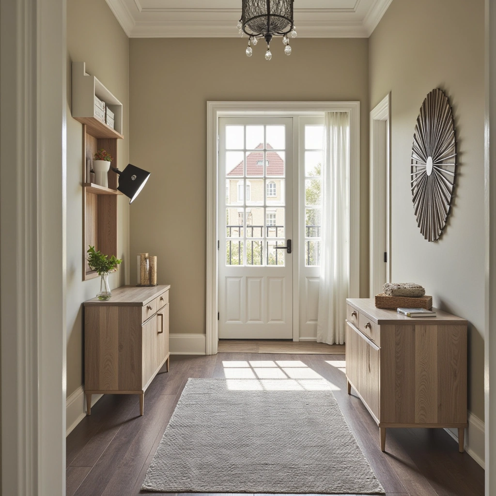Specific advice: Select furniture with a slim profile, such as narrow coat racks, slim benches, or wall-mounted storage units. Use these pieces to create a cohesive and streamlined look.