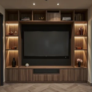 Specific advice: Opt for tall, slim furniture pieces like bookshelves or wall-mounted cabinets. Use the upper part of the walls for decorative items, and keep the lower part clear for easy access. Consider using floating shelves to save floor space and add a touch of modern elegance.